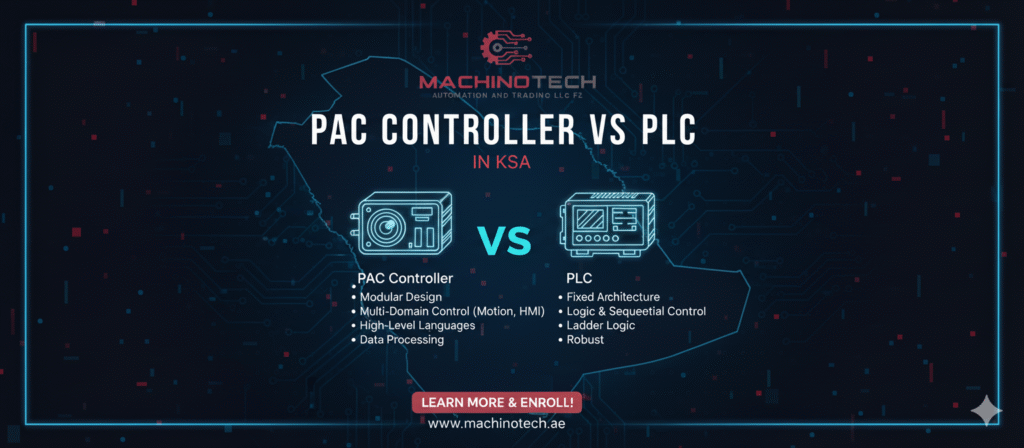 Explore PAC Controller vs PLC in KSA with Machinotech. Learn differences, applications, and how both drive automation and smart industry in Saudi Arabia.