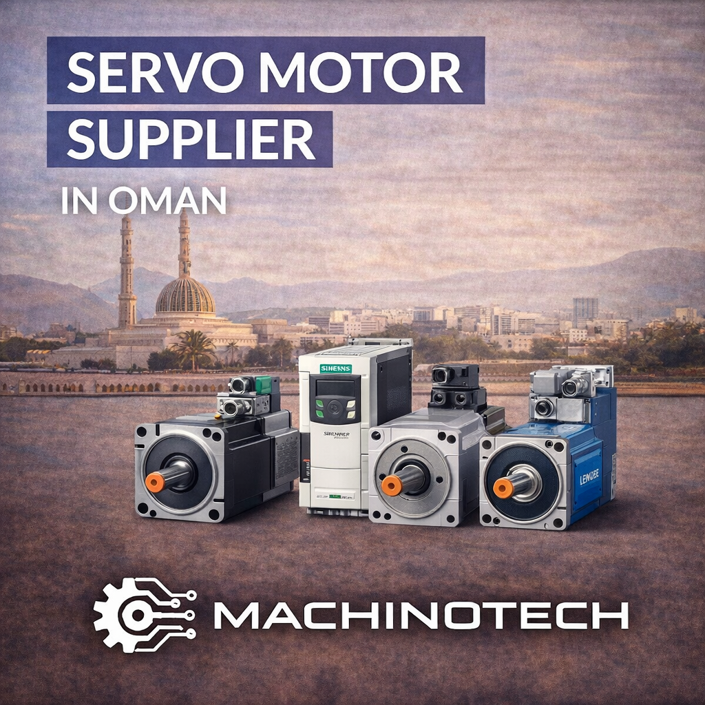 Machinotech is a trusted servo motor supplier in Oman, offering Siemens, Schneider, ABB, Lenze, and Inovance servo motors for precision motion control.